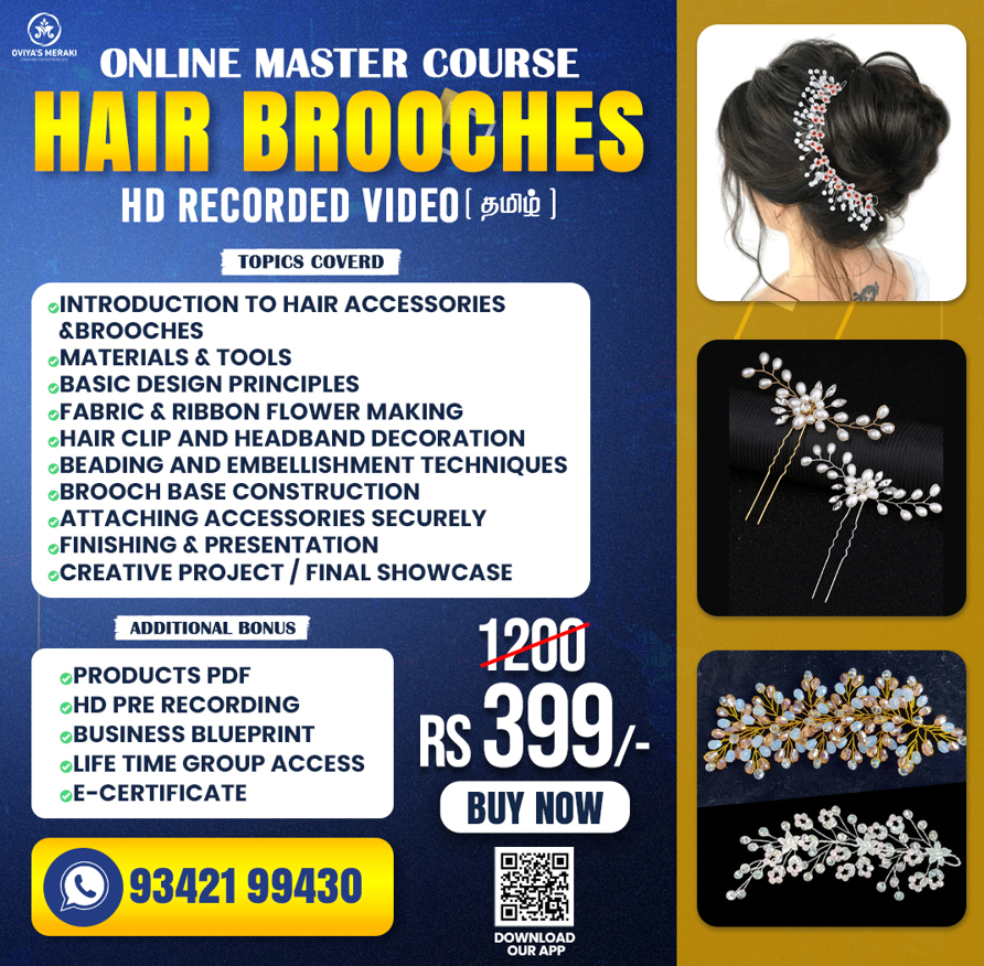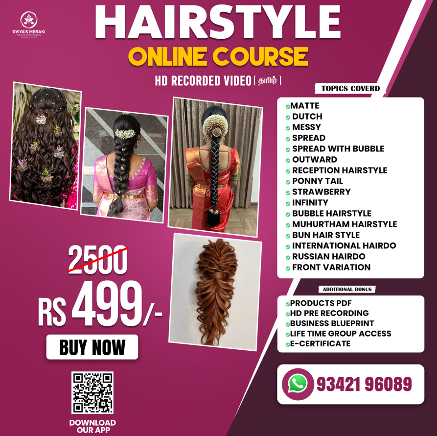 Master professional bridal & modern hairstyles with step-by-step HD recorded videos explained in simple Tamil. This course is perfect for beginners, makeup artists, beauticians & salon owners who want to upgrade skills and increase income.